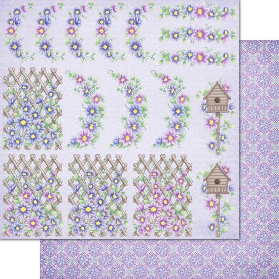 Explore a paper collection with elegant florals spread across each page, colored in soft purples, and greens. Decorated and accented with an enchanted garden of climbing clematis flowers. Enjoy creating endless designs for floral focal points and backgrounds without the frustration.