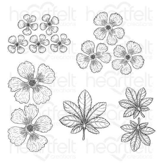 Heartfelt Creations Hollyhock Petals & Leaves Cling Stamp Set