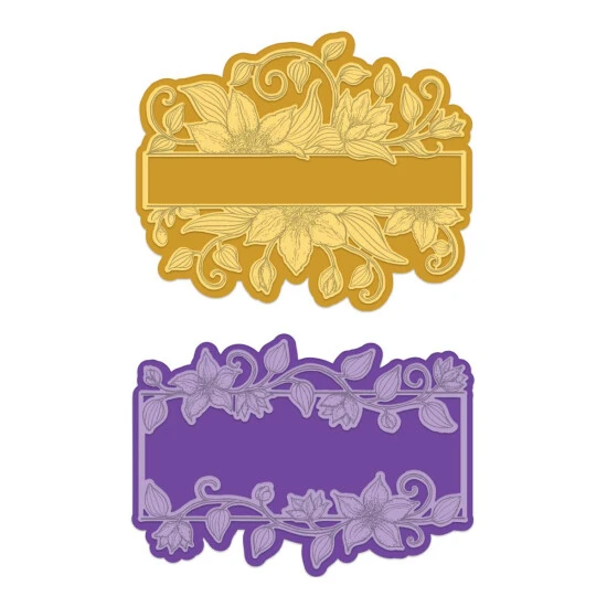 These dies are part of the Floral Banners Collection and pair with the Vining Clematis Banner Cling Stamp Set.